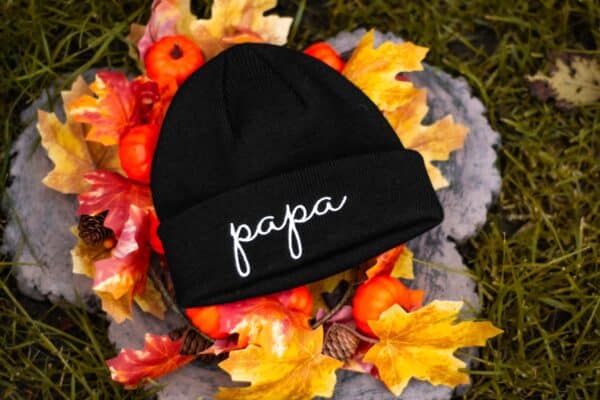 Ezek a hímzett téli sapkák egyedi stílust és meghittséget kölcsönöznek viselőjüknek. A sapin büszkén viselheted a „Papa” feliratot. Ezen kívül kényelmes és melegen tart a hideg téli napokon, így tökéletes választás, ha szereted kifejezni családi kötelékedet a divatodon keresztül.